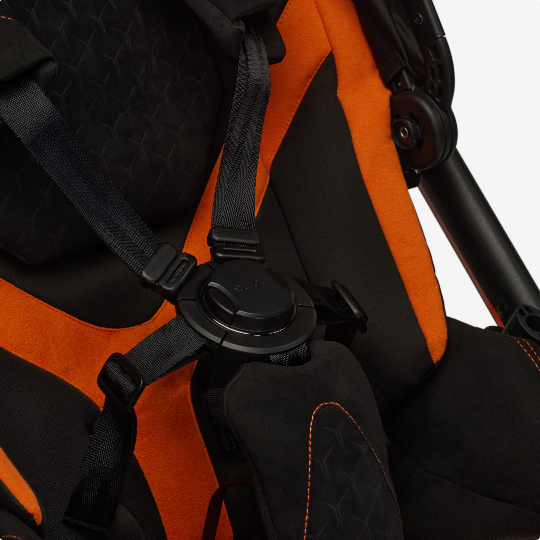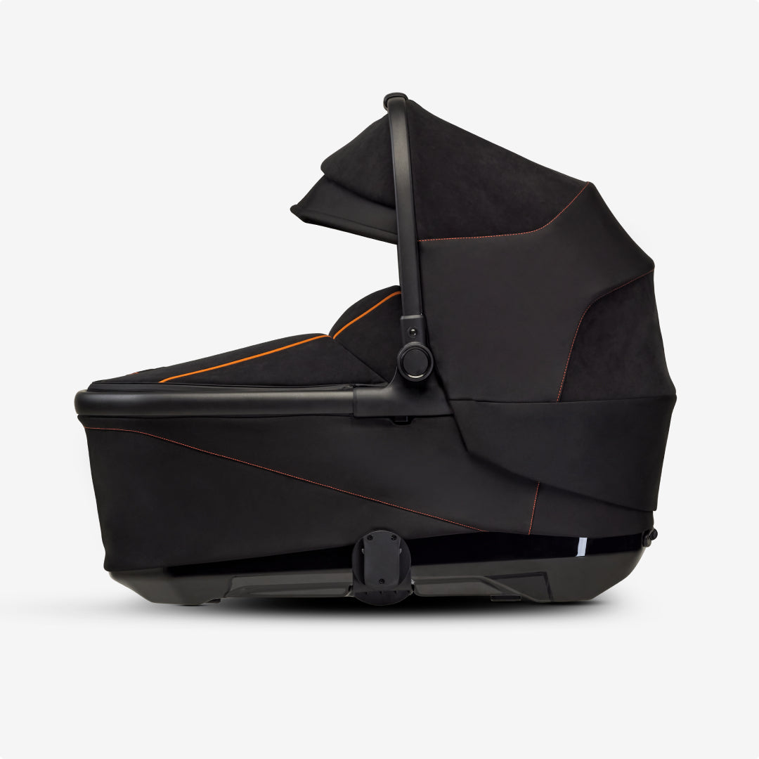 Reef AL Arancio incorporates automotive-inspired materials at every touchpoint - high performance suede, genuine Italian leather details and a high gloss ply carbonate carrycot with integrated mesh for ultimate performance.