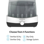 4-in-1 functions: Steriliser & Dryer, Steriliser Only, Dryer Only, Storage Rack