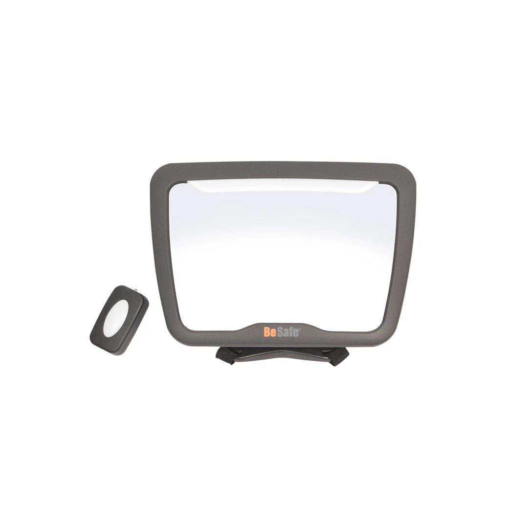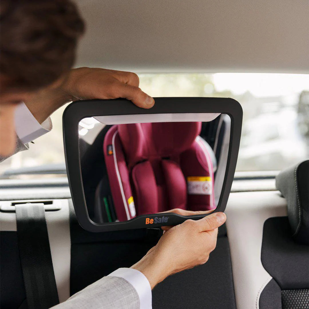 The upgraded Baby Mirror XL² enables you to keep contact with your little one when they're in a rear facing car seat. Use in daylight or when in darkness, it features remote-controlled lights and lots of other great new functions.