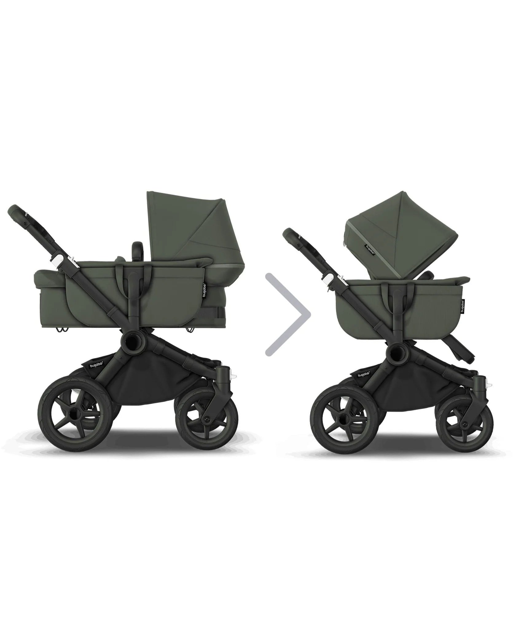 The side-by-side geometry of the Bugaboo Donkey 5 is great for a sibling connection, especially when they're sitting facing each other. And with a new higher bassinet (51cm) and a seat position (57cm), your children are well protected and closer to you than ever.
