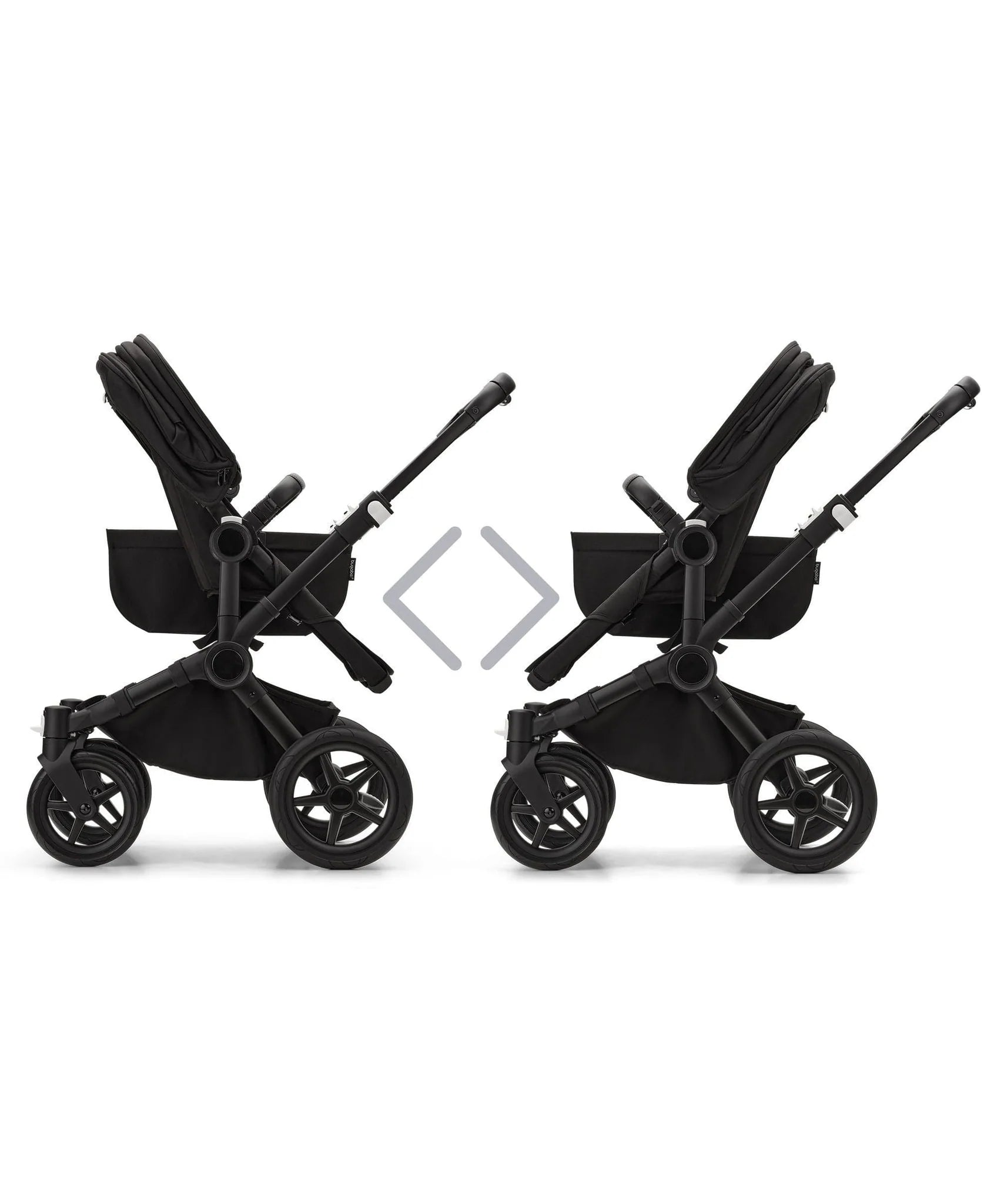 The side-by-side geometry of the Bugaboo Donkey 5 is great for a sibling connection, especially when they're sitting facing each other. And with a new higher bassinet (51cm) and a seat position (57cm), your children are well protected and closer to you than ever.