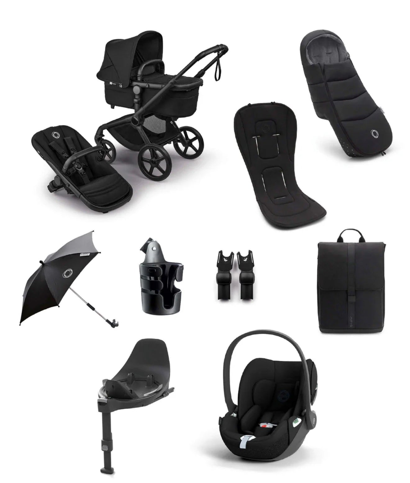 Bundle includes : Pushchair, Carrycot, Footmuff, Changing backpack, Cup holder, Seat liner, Universal Car Sear adapters & Parasol (Raincover sold separately)