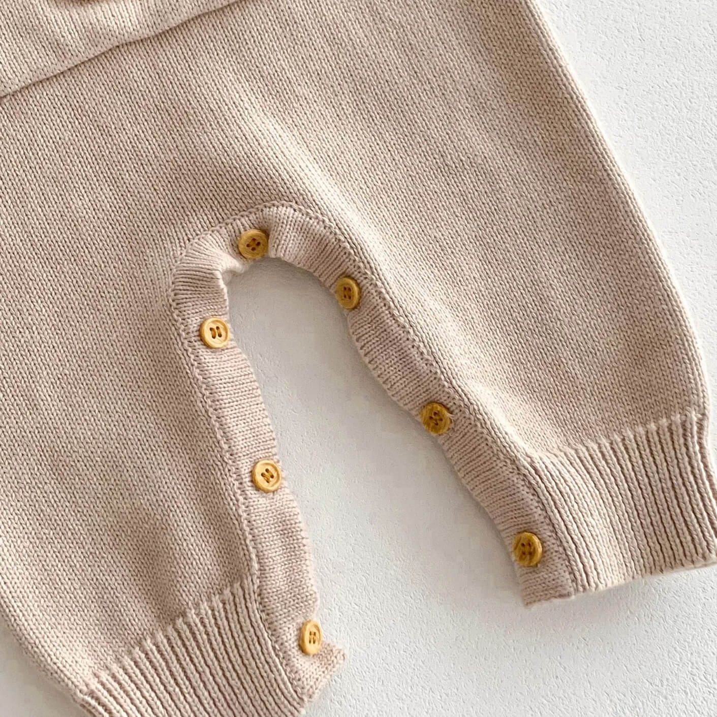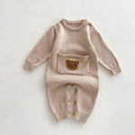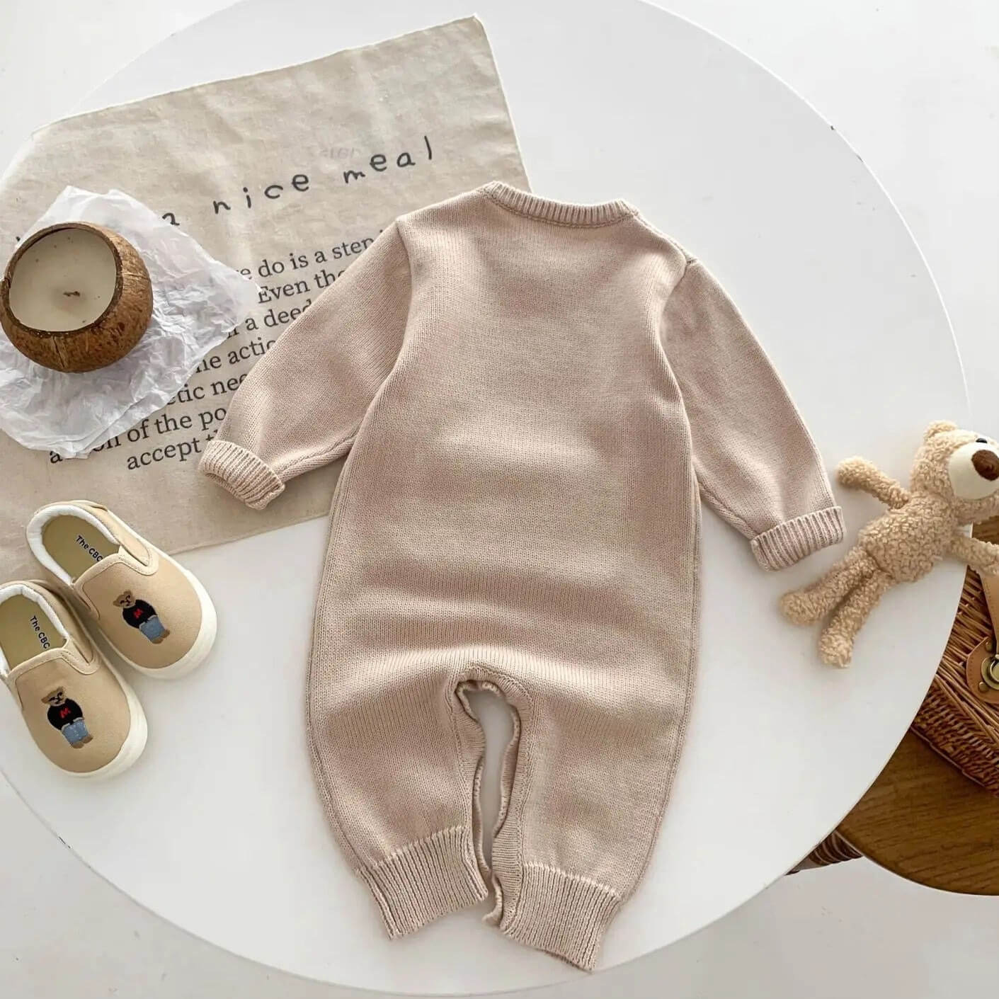 💫 Stylish and Versatile: Not only is it plush and snug, but it's also incredibly stylish. The timeless design and neutral colors ensure that your baby will be the fashion star of the playdate. The knitted bear jumpsuit is perfect for a casual day out or even a special occasion.