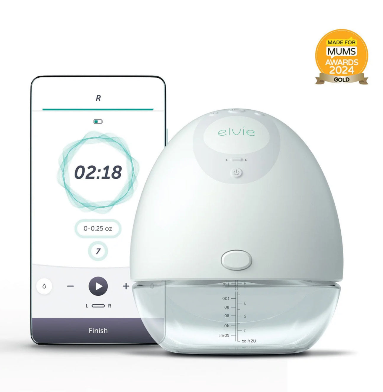 Elvie Pump is a smart, slimline wearable electric breast pump with 5 oz / 150 ml capacity. Tucking discreetly in-bra, Elvie Pump can be controlled from the Pump with Elvie app for a seamless hands-free experience - leaving you free to roam where other pumpers dare not go.