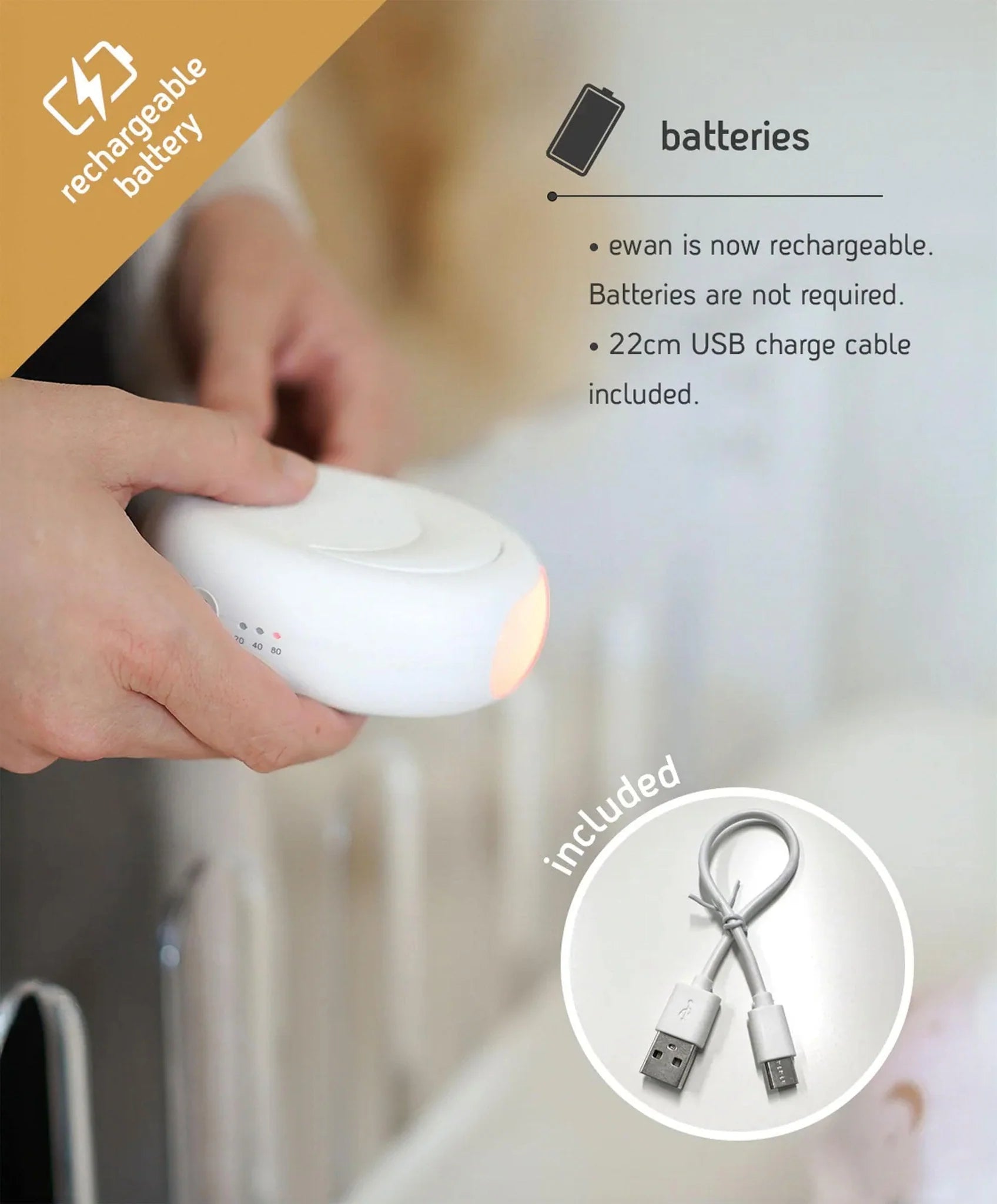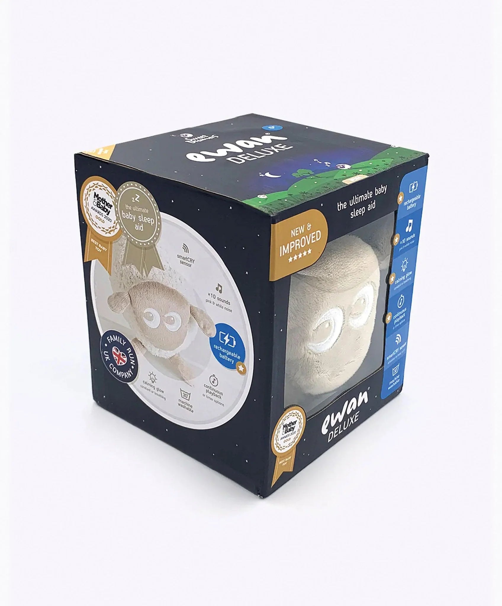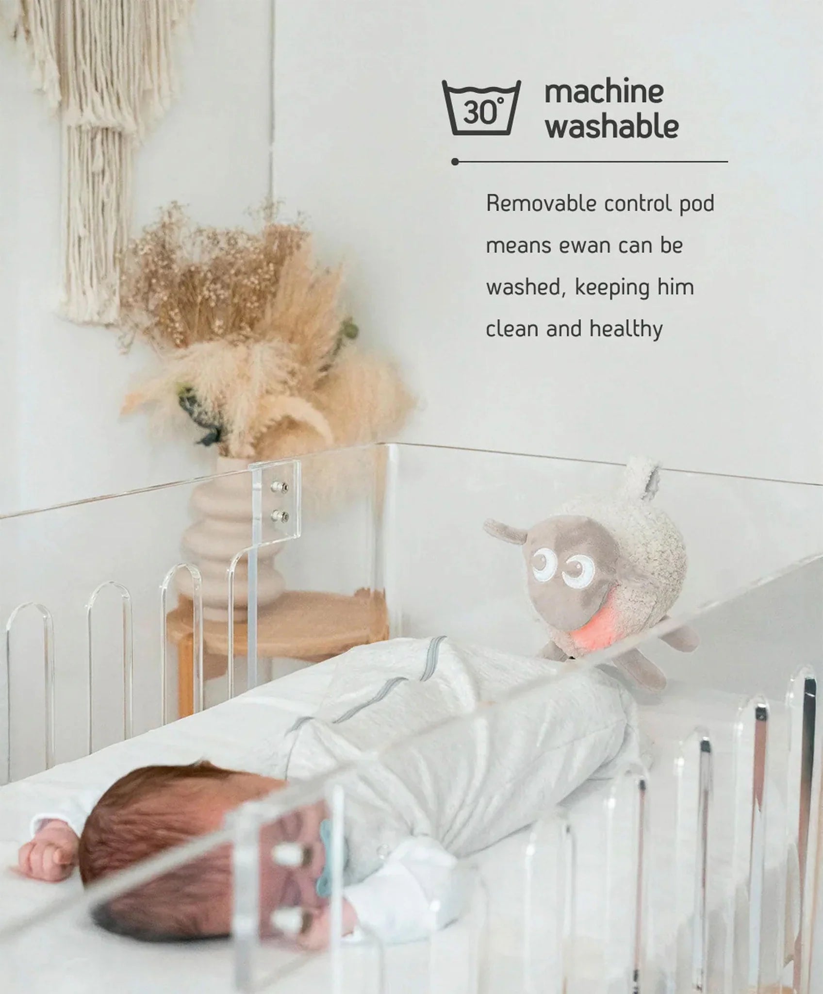 Say goodbye to sleepless nights! The clever thing about soft and cuddly ewan is that he combines a range of 10 pink and white noise sounds, including womb and heartbeat, together with a soft melatonin inducing glow to create a soothing environment that lulls babies to sleep within minutes. Inspired by paediatric research, ewan uses the science of sleep to calm even the fussiest babies or toddlers. With an intelligent smartCRY sensor which automatically activates when baby cries, or a continuous playback option, ewan helps resettle your little one and ensures the entire family get a great night’s sleep!