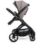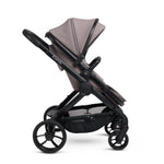 iCandy Peach 7 in Porcini offers soft taupe fabrics, a sleek Jet Black chassis and a spacious carrycot suitable for permanent overnight sleeping. Integrated Ride-on Board, puncture-proof wheels and ergonomic handlebar enhance practicality. Premium jersey fabrics, plus accessories including matching changing bag, footmuff and liner, ensure timeless style, all-day comfort and everyday functionality.