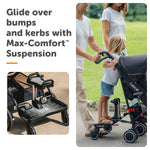 · Big wheels and a wide platform gives you all the foot room you need and makes it easy to walk behind the BuggyBoard® Maxi Plus.