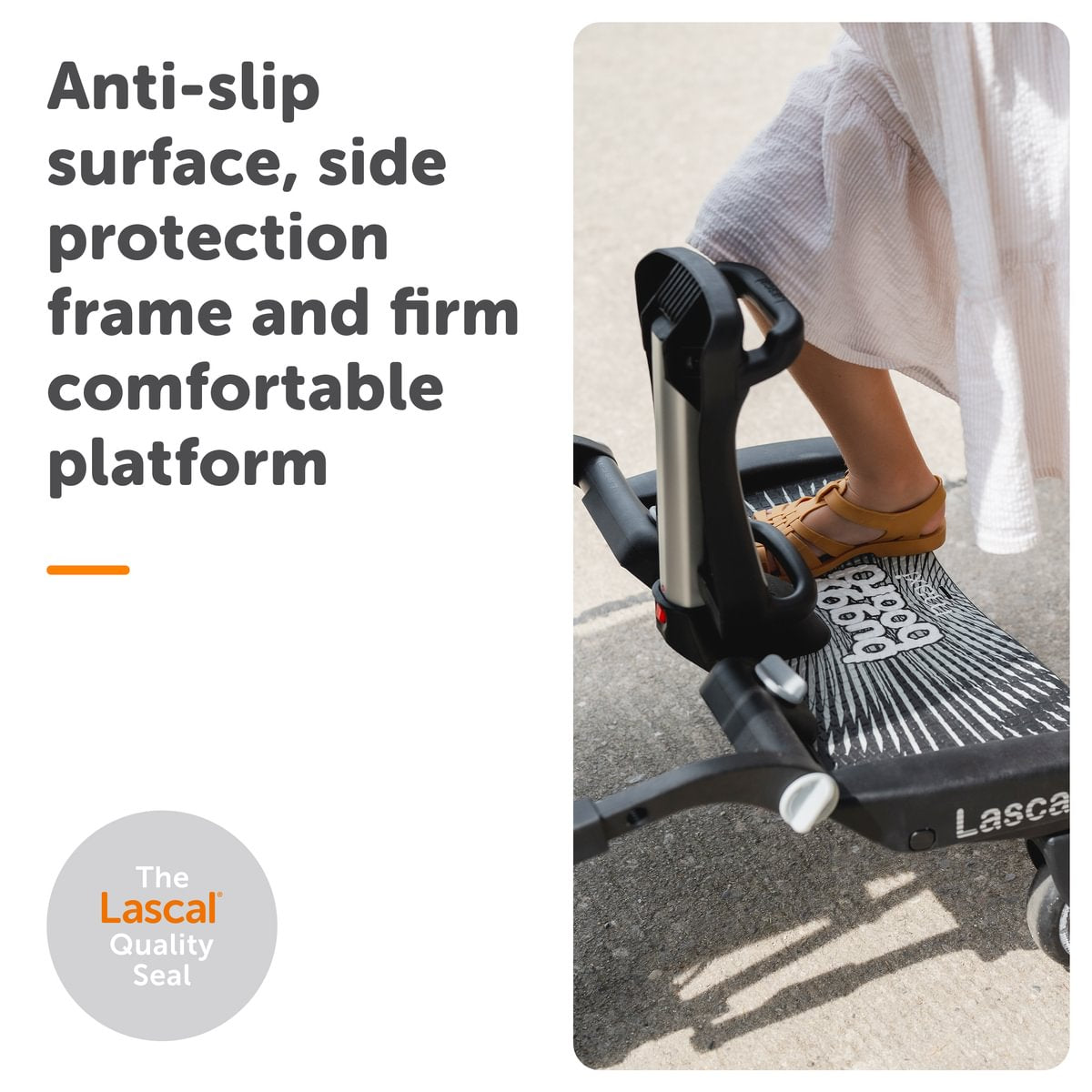 Smart, universal, and user-friendly, the Lascal BuggyBoard® easily fits into your pushchair, giving tired toddlers a safe and practical lift. It’s the easiest way to travel on foot with more than one child – no need for a double buggy – and your toddler will love the ride!