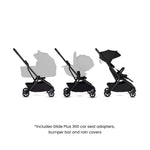 Nia chassis, seat unit, bumper bar, rain cover, Glide Plus 360 adaptors. Carrycot and additional accessories sold separately