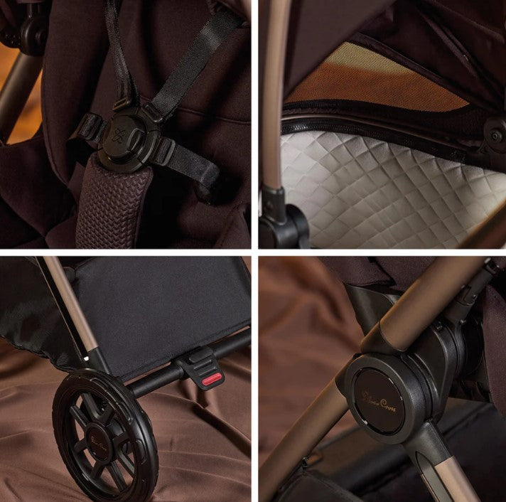 The Silver Cross Reef 2 Pushchair in Special Edition Ganache is beautifully tailored with contemporary jersey fabrics, a tonal matte metallic chassis and soft satin details, you’ll stroll effortlessly through city streets and countryside escapes with Reef 2 Special Edition – the ultimate unique package designed to complement your style.