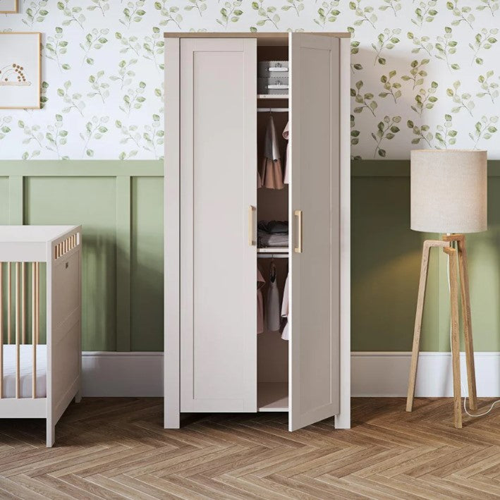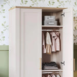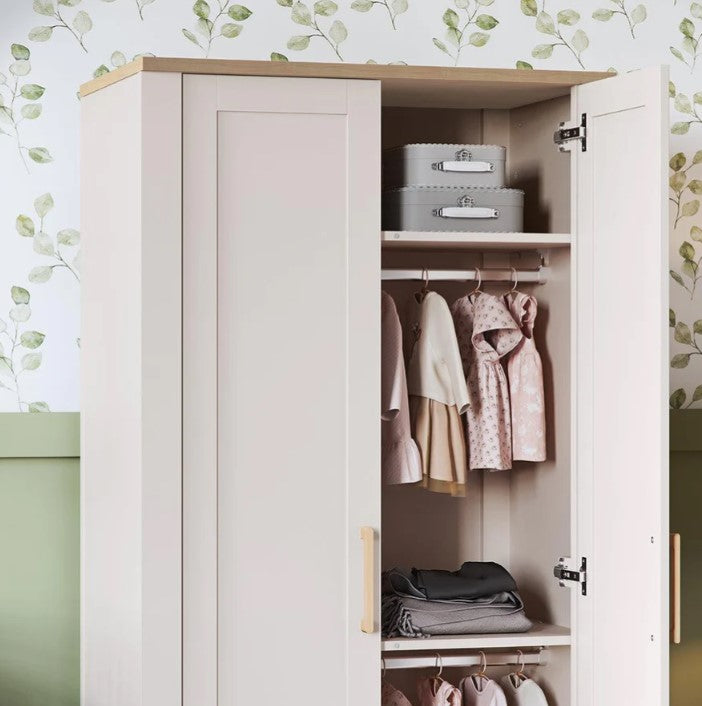 The Silver Cross Seville Wardrobe in Cashmere Oak is the perfect spot to display your baby’s clothing, with two hanging rails and shelves providing lots of space. As your baby grows, the lower rail and shelf can be easily removed for larger garments.