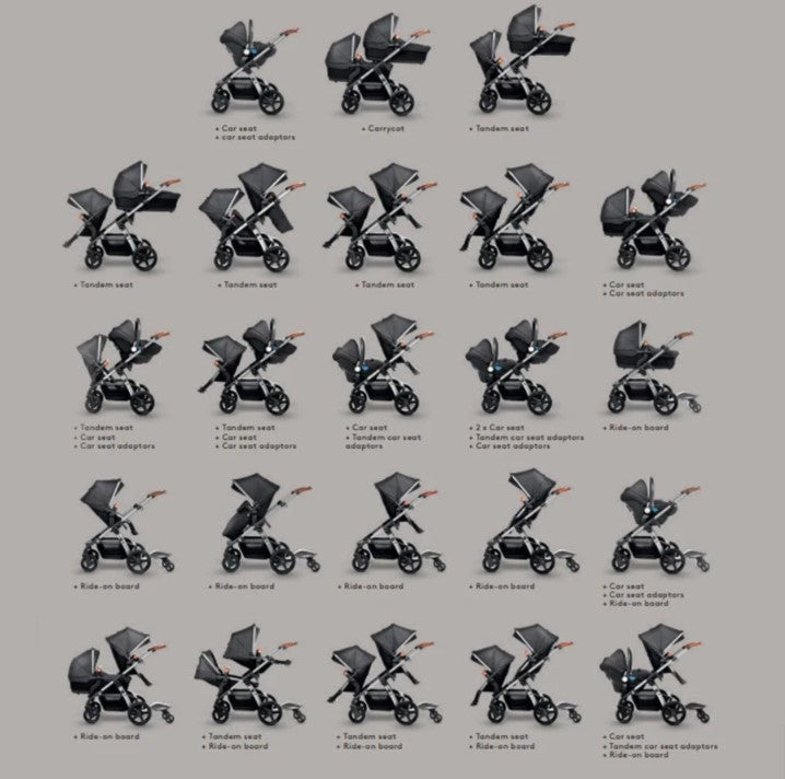 Offering versatility and longevity to suit every family’s needs, Wave 3 can be used in up to 30 configurations (including newborn twin mode) with additional accessories such as a carrycot, carrycot stand, infant carrier car seat or ride on board.
