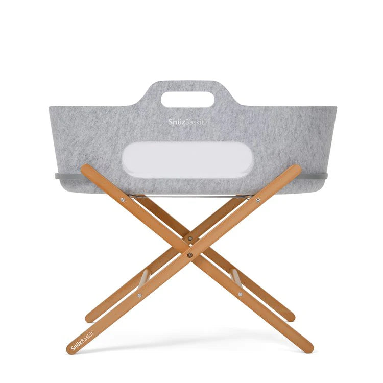 SnuzBaskit Light Grey Moses Basket & Natural Stand