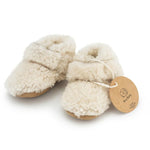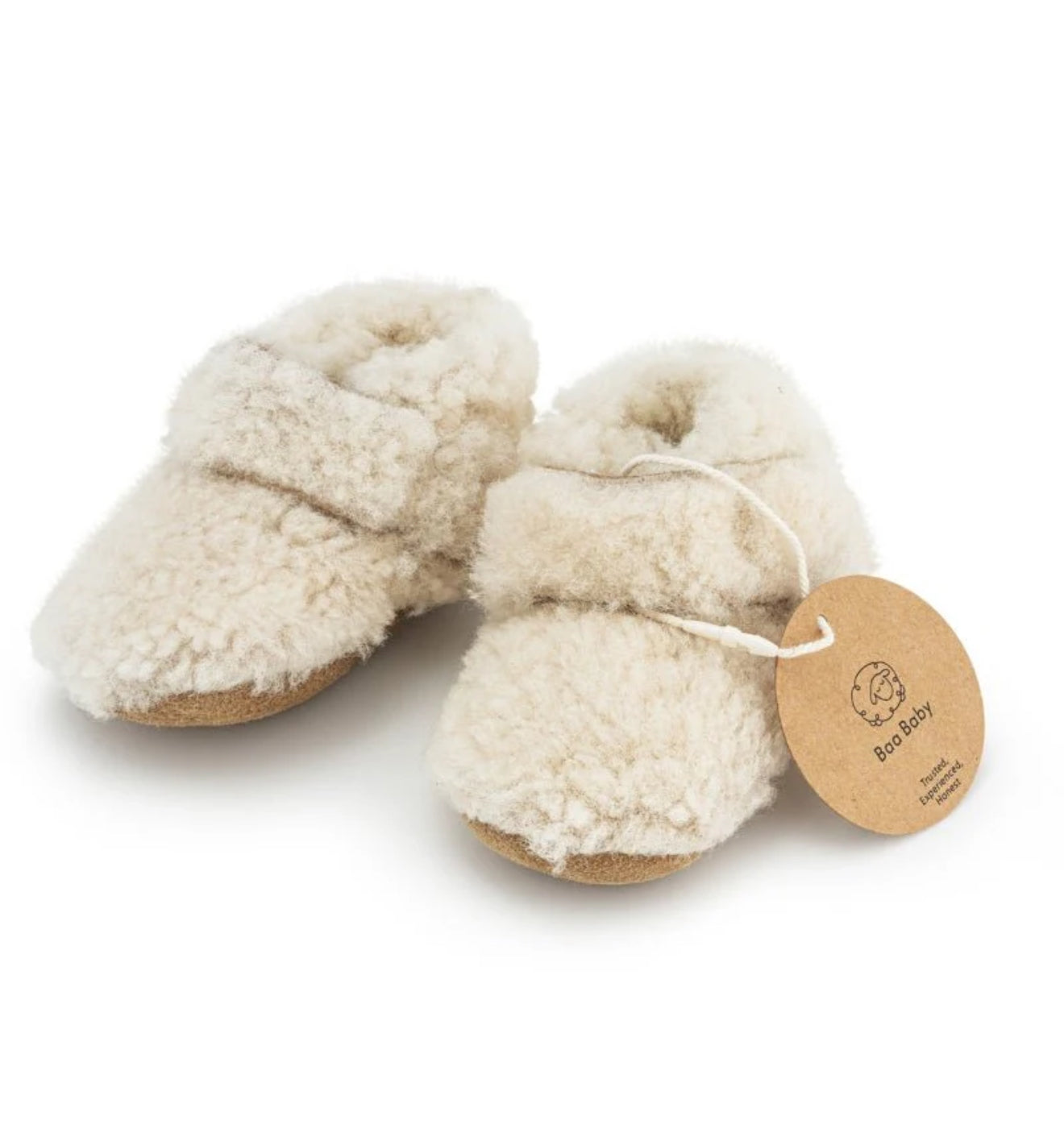 To keep the booties in place (even on the wriggliest toes), a secure velcro strap wraps neatly across the top while the supple suede sole adds gentle grip for early walkers without any stiffness.