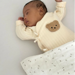 Introducing our cuddly Cozy Crew Club's classic wrap romper, tailored for your precious newborn. This adorable ensemble boasts a charming bow closure and delightful teddy bear boucle decorations adorning the chest, creating an irresistibly cute look. Crafted with care from our signature 50% organic cotton, this romper ensures the utmost comfort for your little one's delicate skin. Snap closures make dressing and diaper changes a breeze, while the nickel-free popper fastening prioritizes safety. Whether it's a boy or a girl, this versatile unisex outfit is perfect for welcoming newborns into the world with warmth and style.