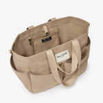 Spot clean with slightly damp brush or cloth to remove dirt. Colour may bleed when wet therefore please take care when in contact with any liquid. If your bag does come into contact with any liquid, please lay flat to dry away from direct sunlight. This is a natural product and natural dyes therefore the colour may fade when in direct sunlight for long periods over time. Please be aware that while the bag can sustain 10-14kg load we do not recommend you hang these bags off your buggy handles, or by carabiner, as the shoulder straps may weaken from the localised weight positioning and handle strain.
